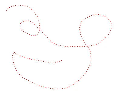 먼저, 사용자가 브라우저에서 펜이나 마우스를 사용해 무언가를 그리는 기능을 제공한다고 가정해봅시다. 보통은 사용자의 커서 움직임을 추적하여 점들을 기록하게 되고 점들은 아래와 같이 기록됩니다.
